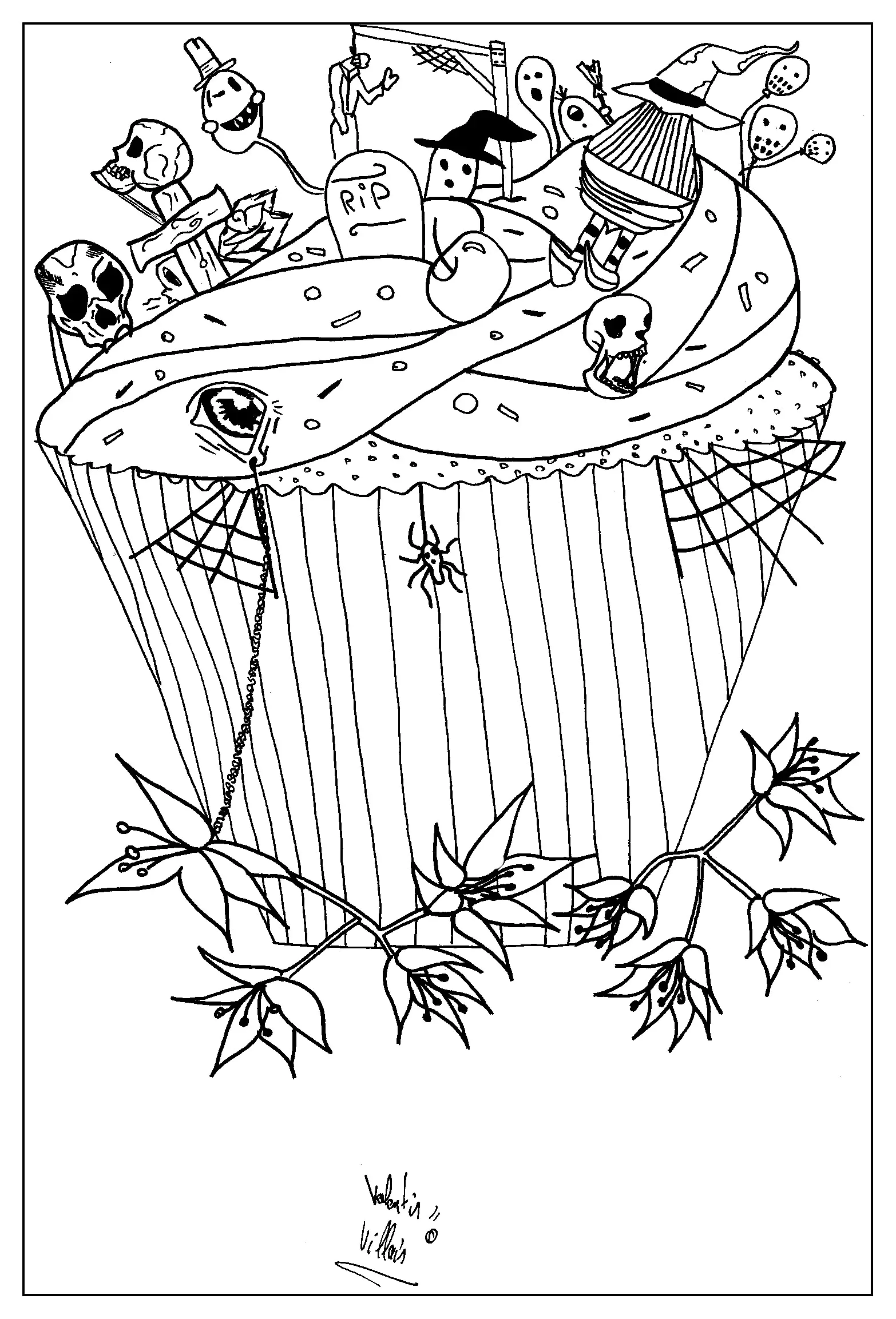 Halloween-Tassenkuchen (Ausmalbild von Cupcakes)