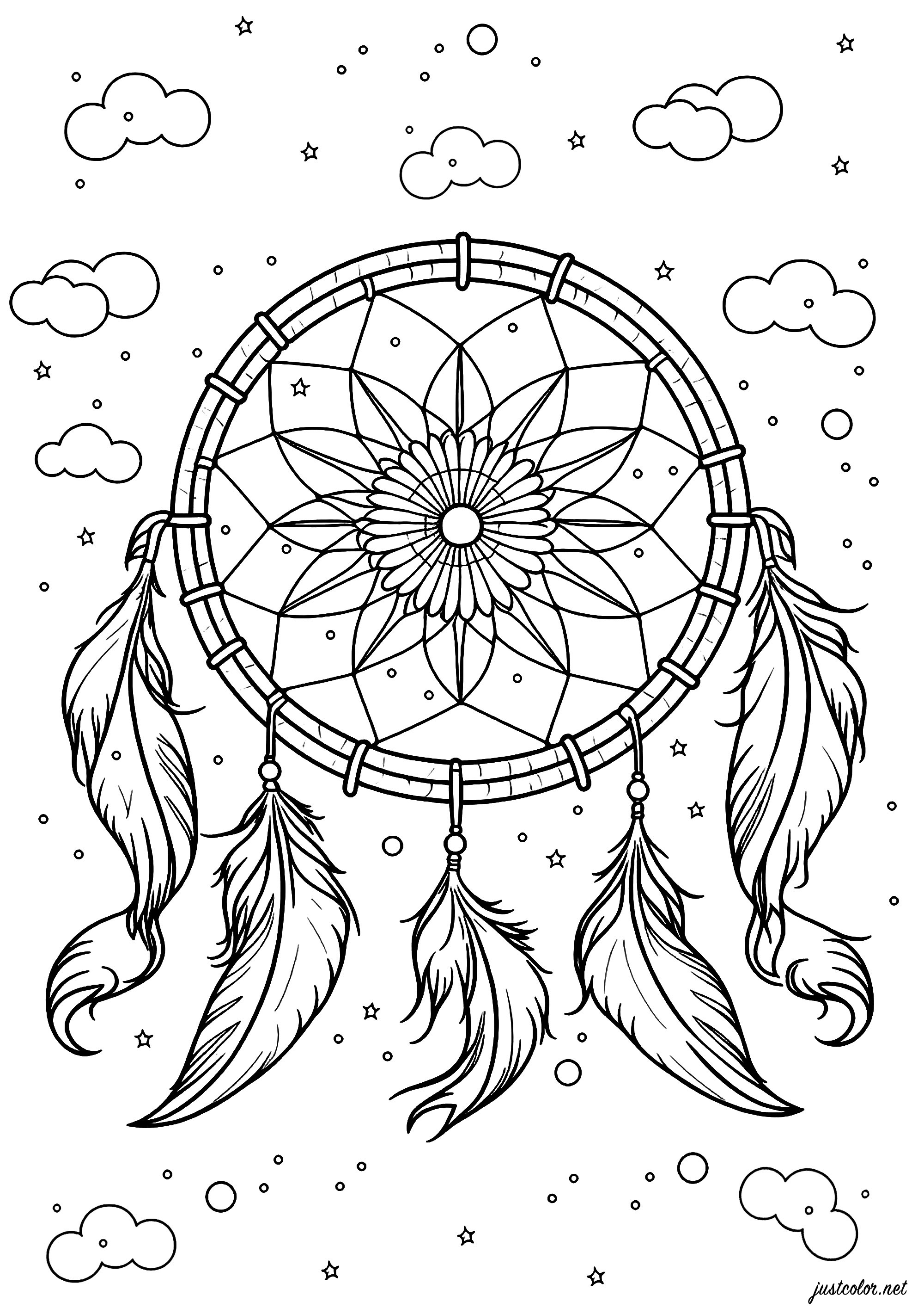 Klicken Sie auf die Schaltflächen unten, um diese Malvorlage kostenlos zu drucken oder als PDF herunterzuladen Ausmalbild von Traumfänger zum Ausmalen