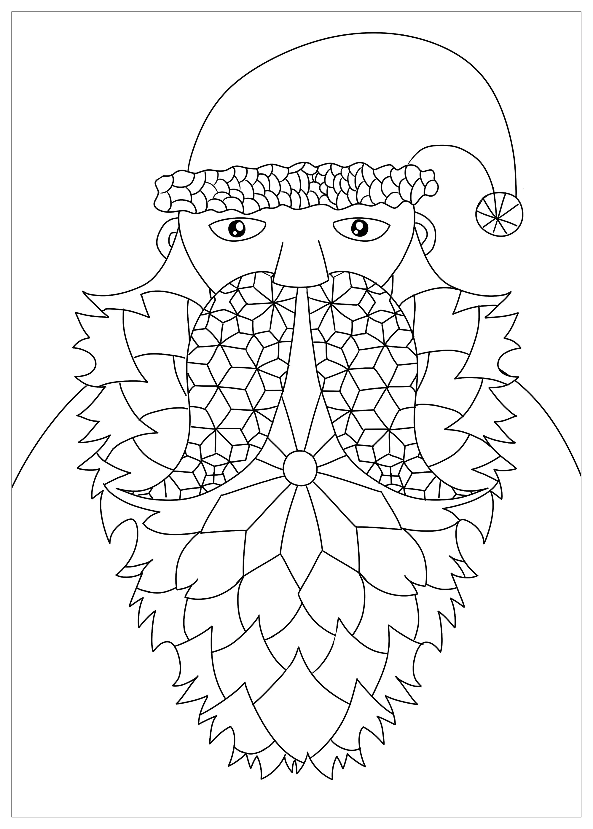 Weihnachtsmann mit einem aus geometrischen Elementen zusammengesetzten Bart