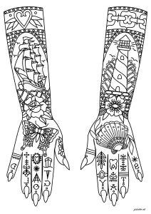 Klicken Sie auf die Schaltflächen unten, um diese Malvorlage kostenlos zu drucken oder als PDF herunterzuladen Ausmalbild von Tatoos zum Ausmalen