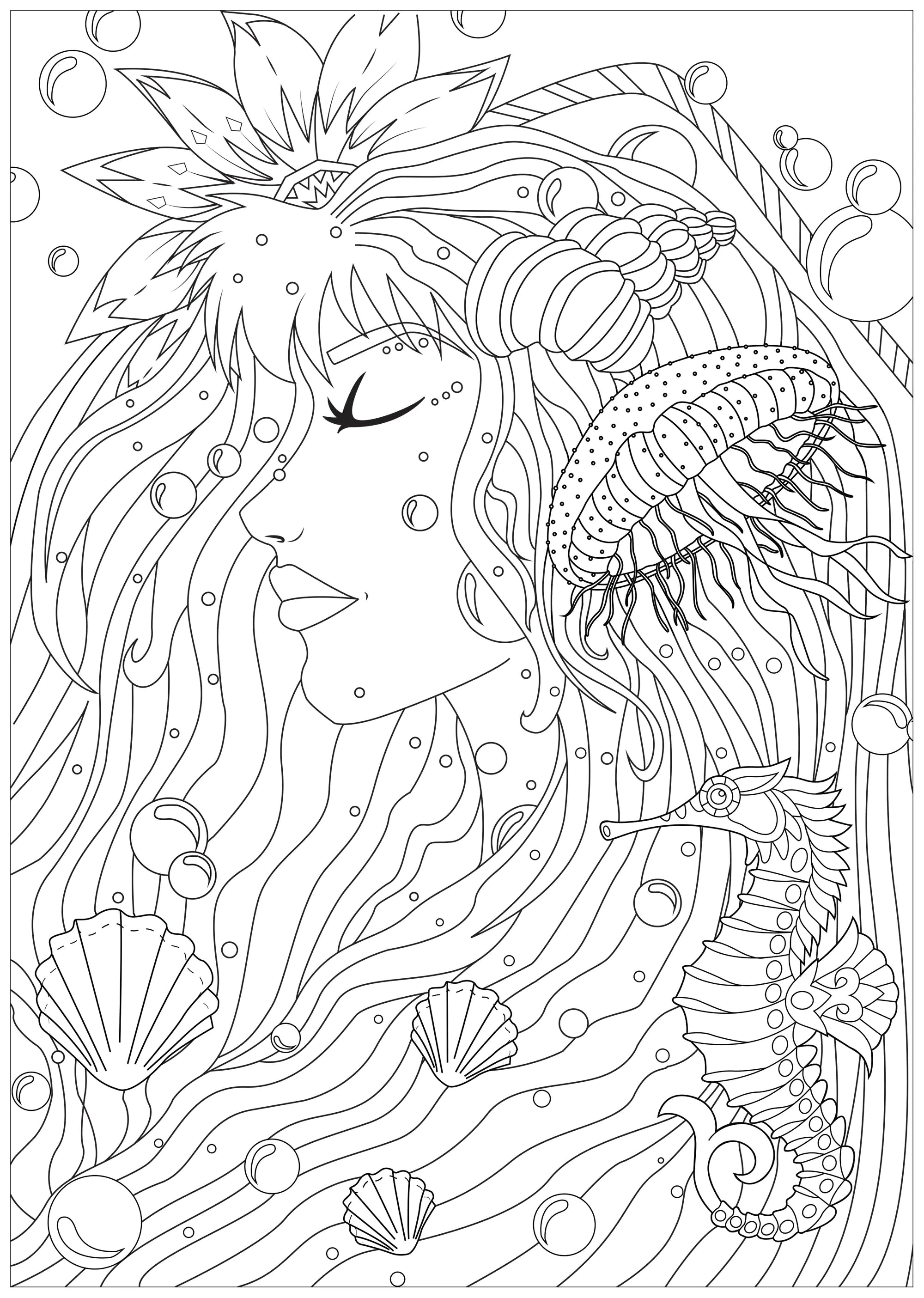 Frau der Meere (Ausmalbild von Wasserwelten)