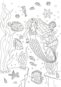 Hier sind unsere Malseiten zum Thema Meer ... Fische, imaginäre Kreaturen der Tiefsee ... Mit diesen originellen Zeichnungen kannst du dir vorstellen, dass du inmitten dieser Fische und Meerjungfrauen schwimmst ...