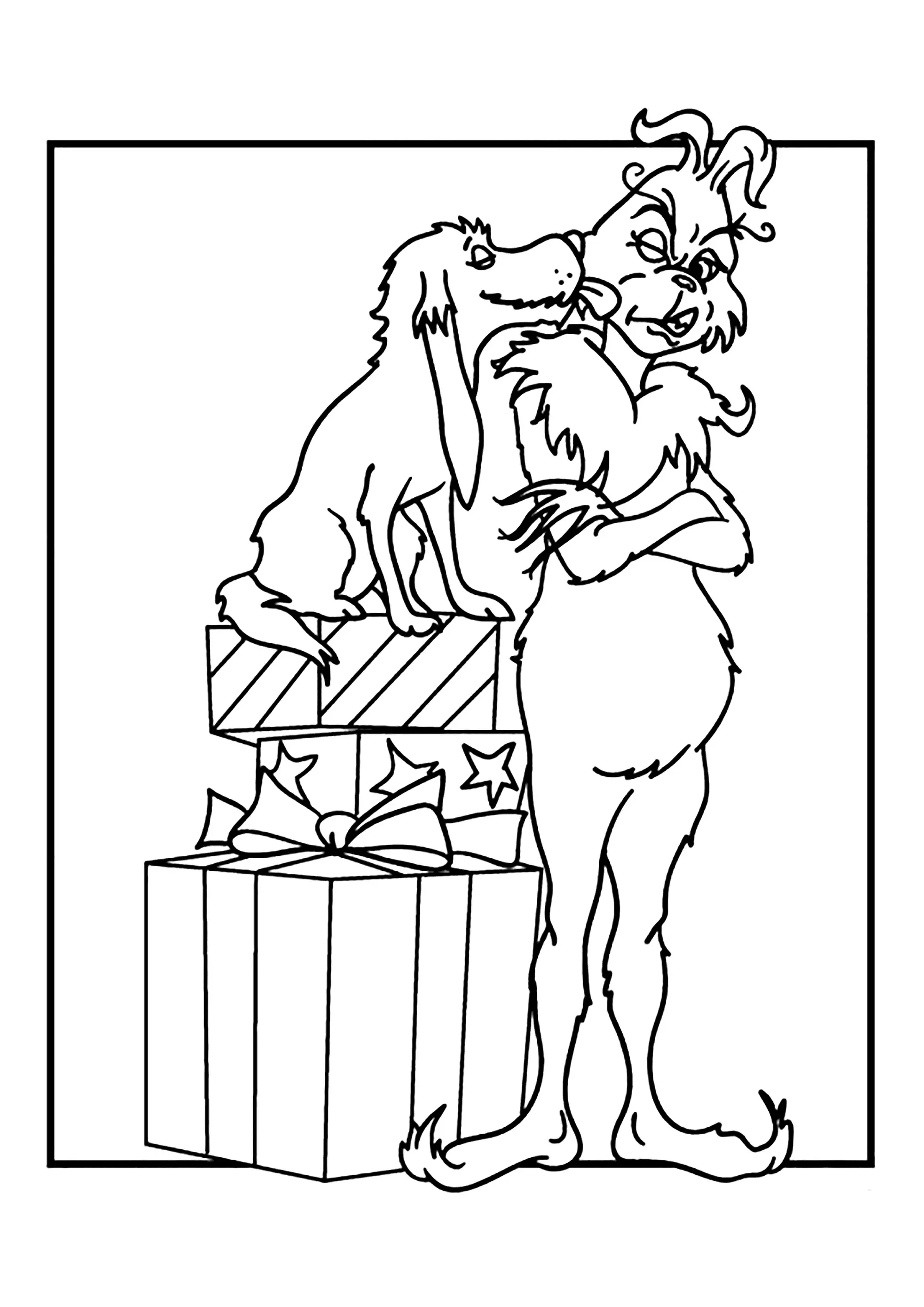 Le Grinch, un chien et des cadeaux (Coloriage)