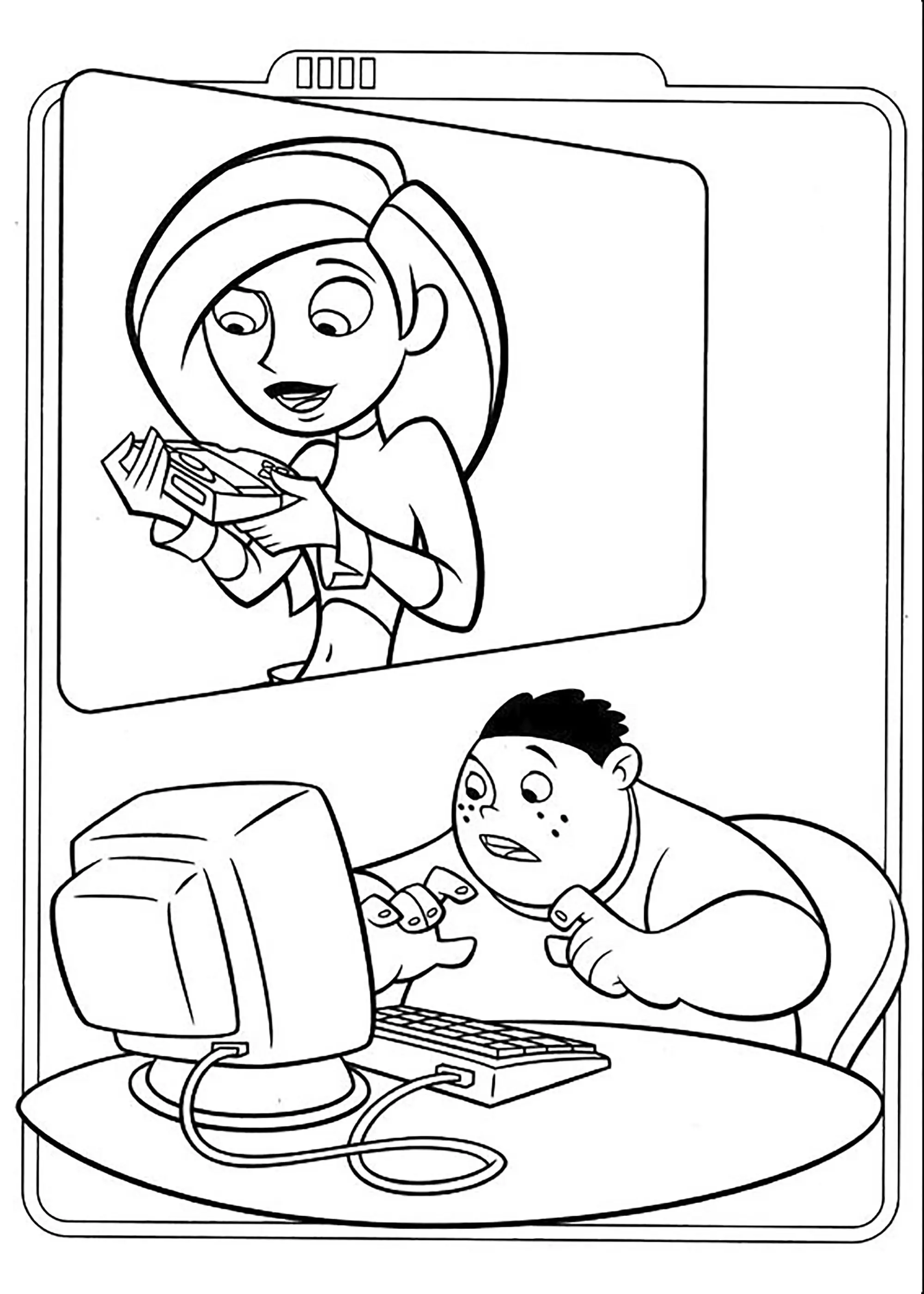 Visio avec Kim Possible et Super Genius (Coloriage)