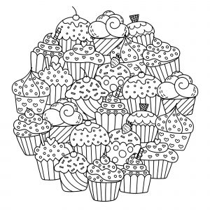 主页 » 主题填色书 テーマ別の塗り絵 » 儿童着色页 : 纸杯蛋糕和蛋糕 »