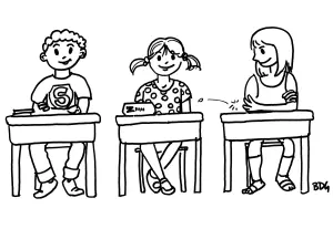 Sencillas páginas para colorear para niños sobre el tema de la escuela. Estas páginas para colorear pueden ayudar a tu hijo si se apresta a empezar la escuela (primer año o año nuevo). ¡Gracias a estas imágenes verá que en la escuela también se divertirá mucho con sus amigos!