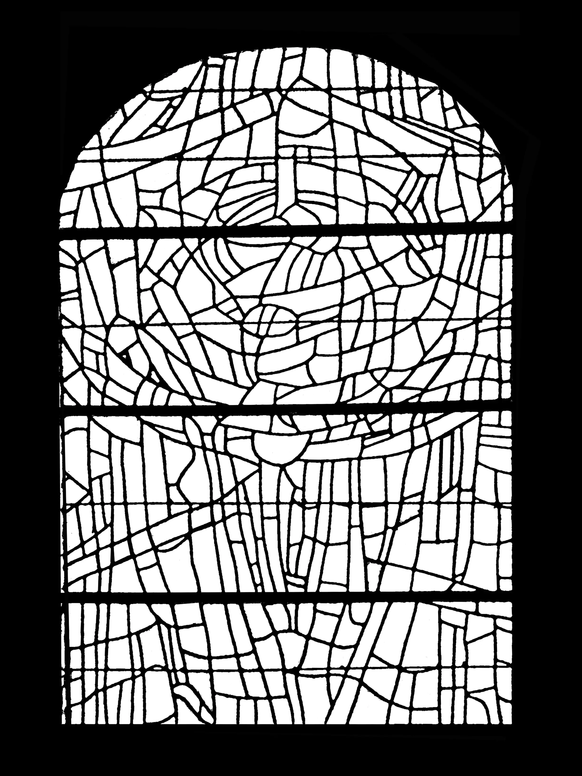 Página para colorear realizada a partir de una vidriera moderna de la iglesia Saint Servant sur Oust (Francia) - versión 1