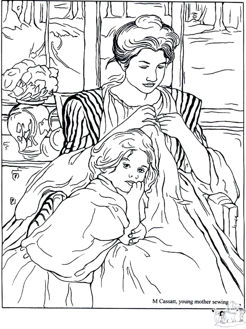 M cassat jeune mere cousant (Coloriage de Chefs d’œuvres)