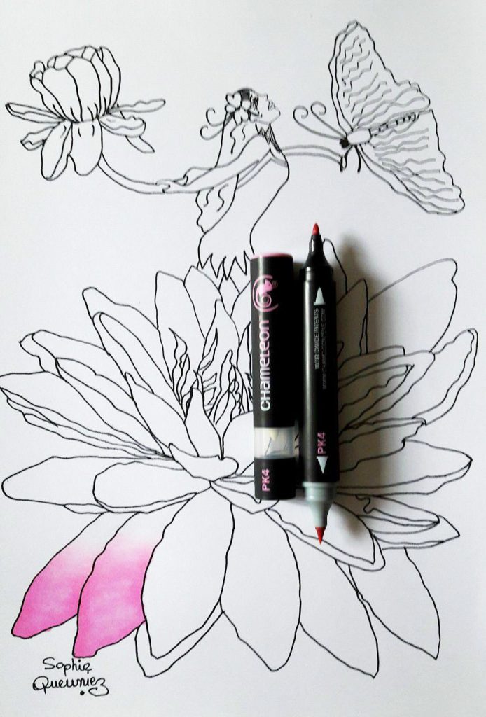 Ici j’ai choisi de colorier mon illustration Fée des Fleurs. Il est disponible dans ma page Artiste.
