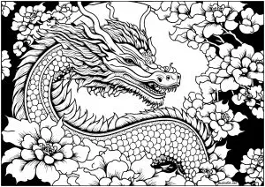 Découvrez 31 Coloriages de Dragons à imprimer pour adultes, à télécharger ou imprimer gratuitement