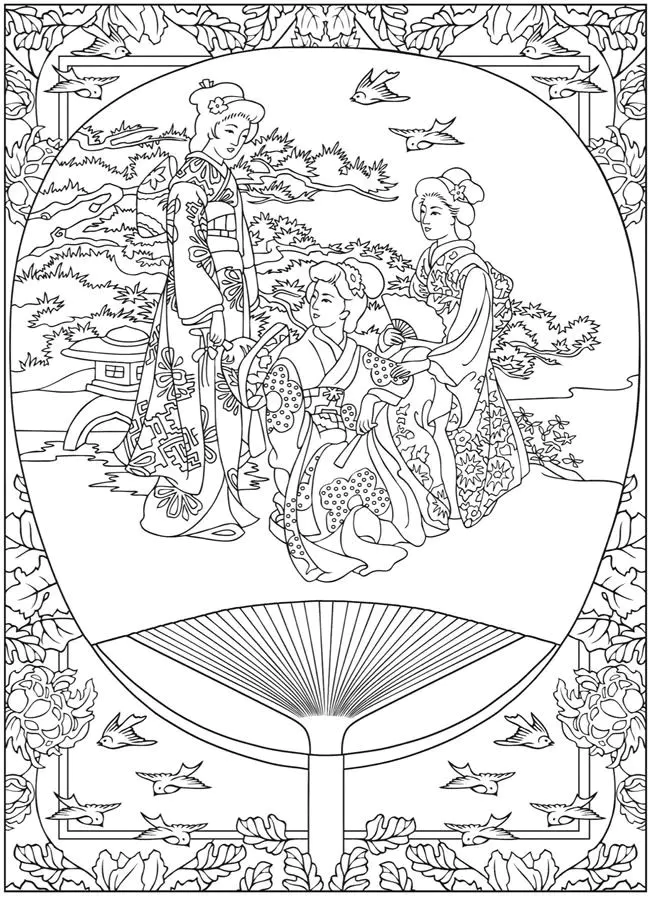 Scene de vie traditionnelle japon (Coloriage)