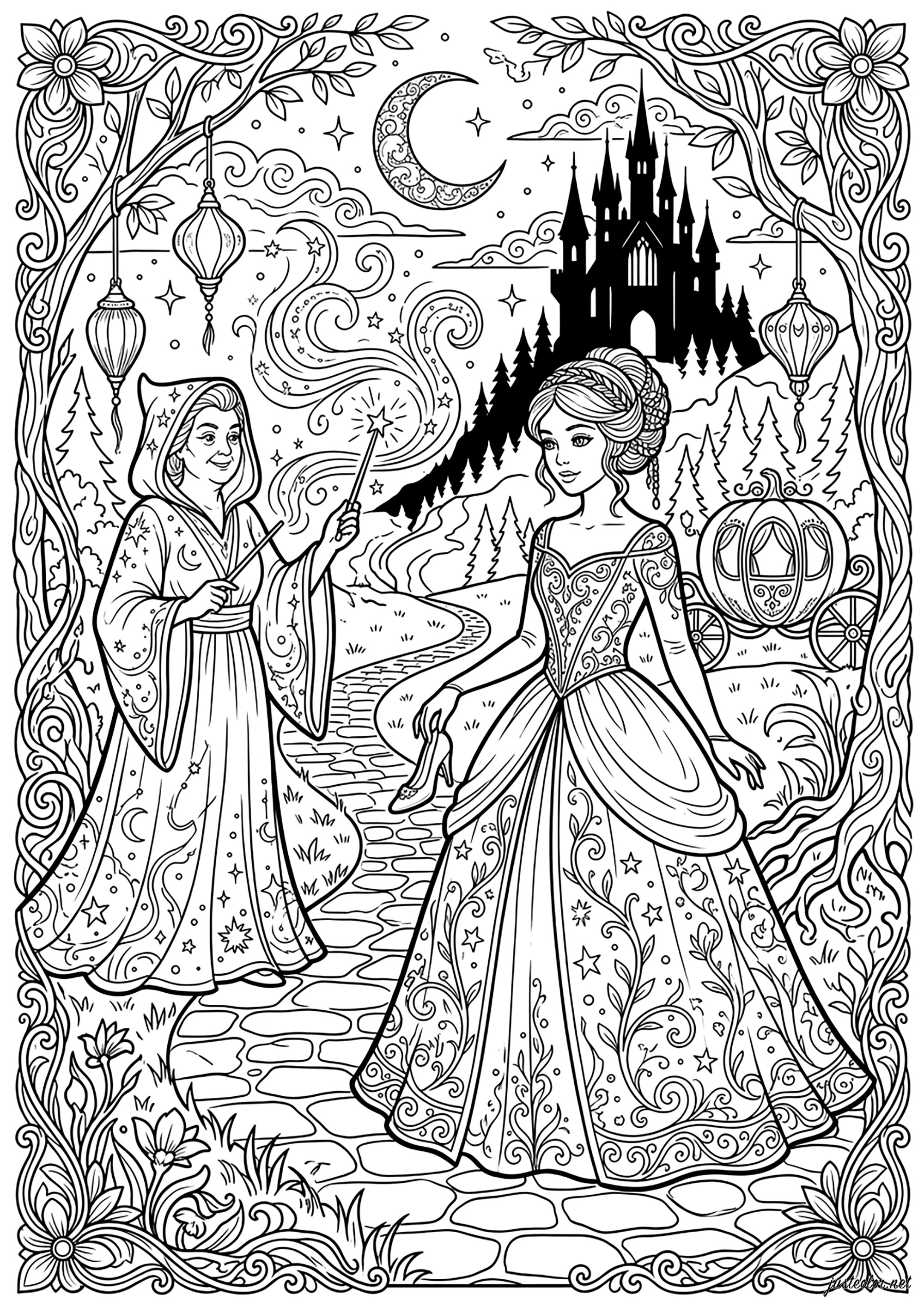 Cinderella and the Fairy Godmother (Fairy tale Coloring Page)
