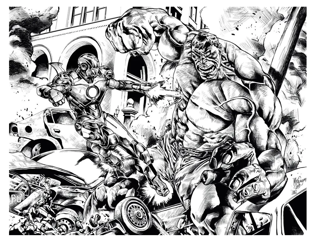 Iron Man vs Hulk (Pagina Libri e fumetti da Colorare)