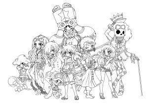 ワンピースの複雑な塗り絵(多数のキャラクター入り)