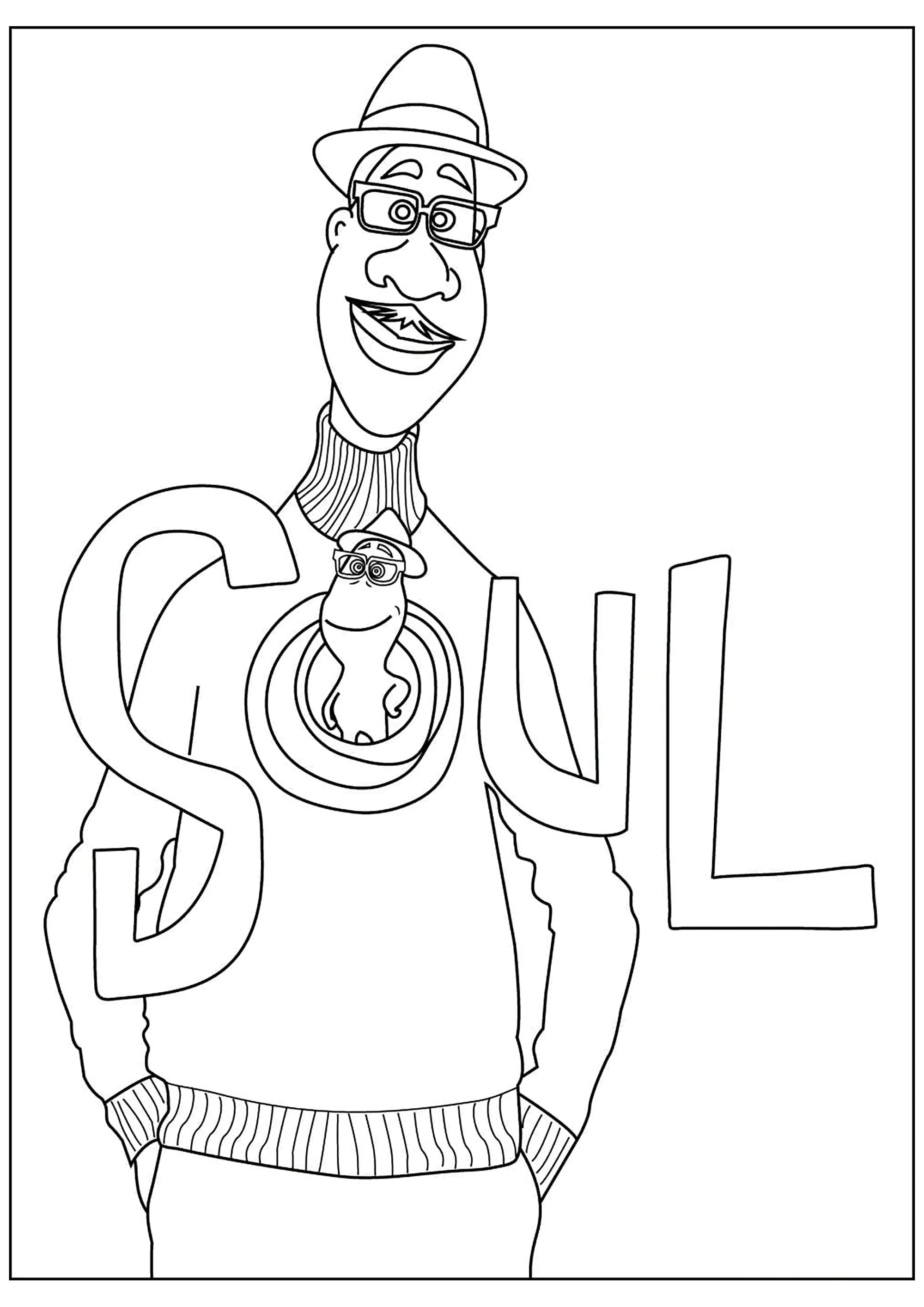A cool and easy printable Soul colouring page for kids, to print.