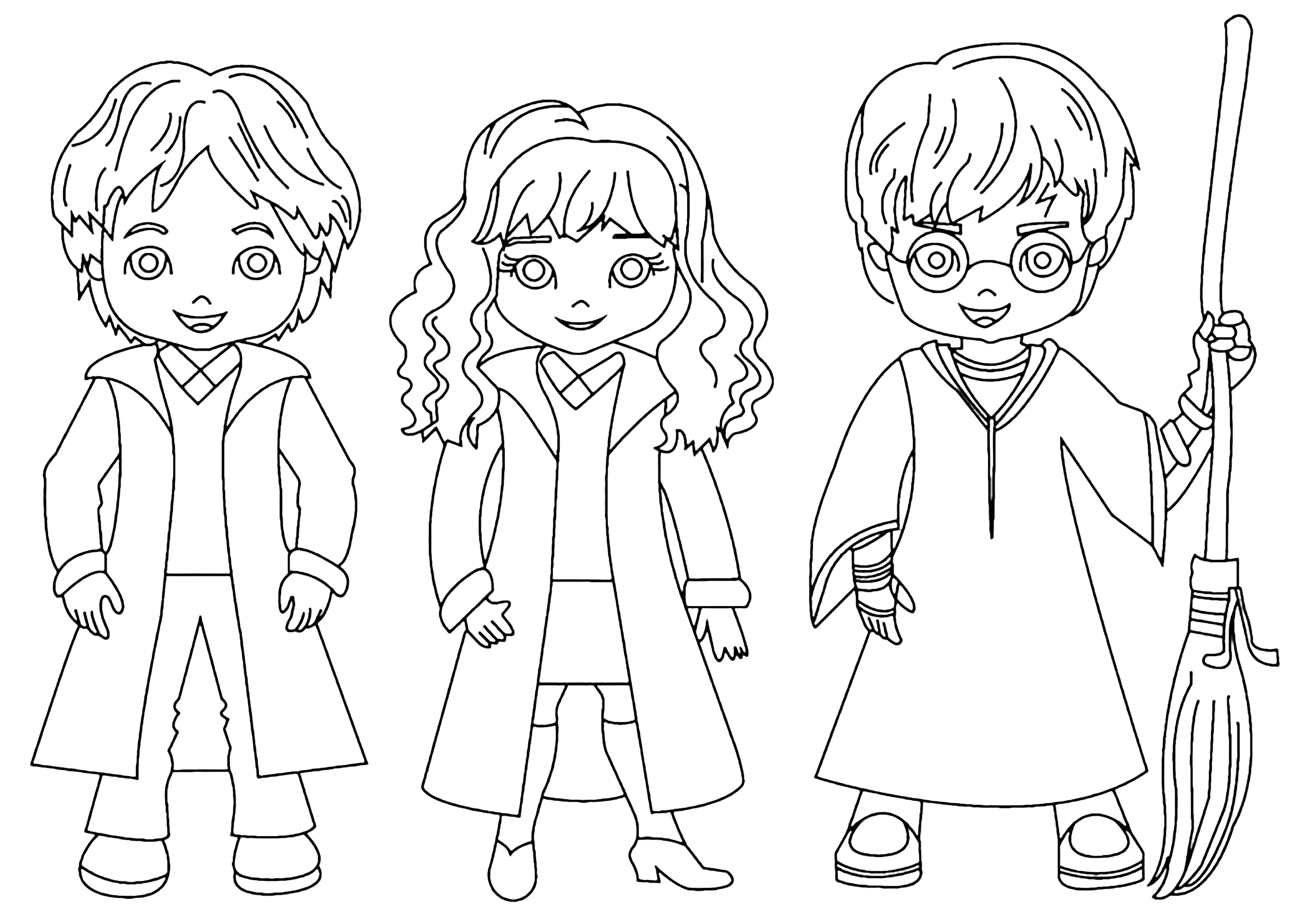 Harry, Ron and Hermione: Kawaii style (Harry Potter Coloring Page)
