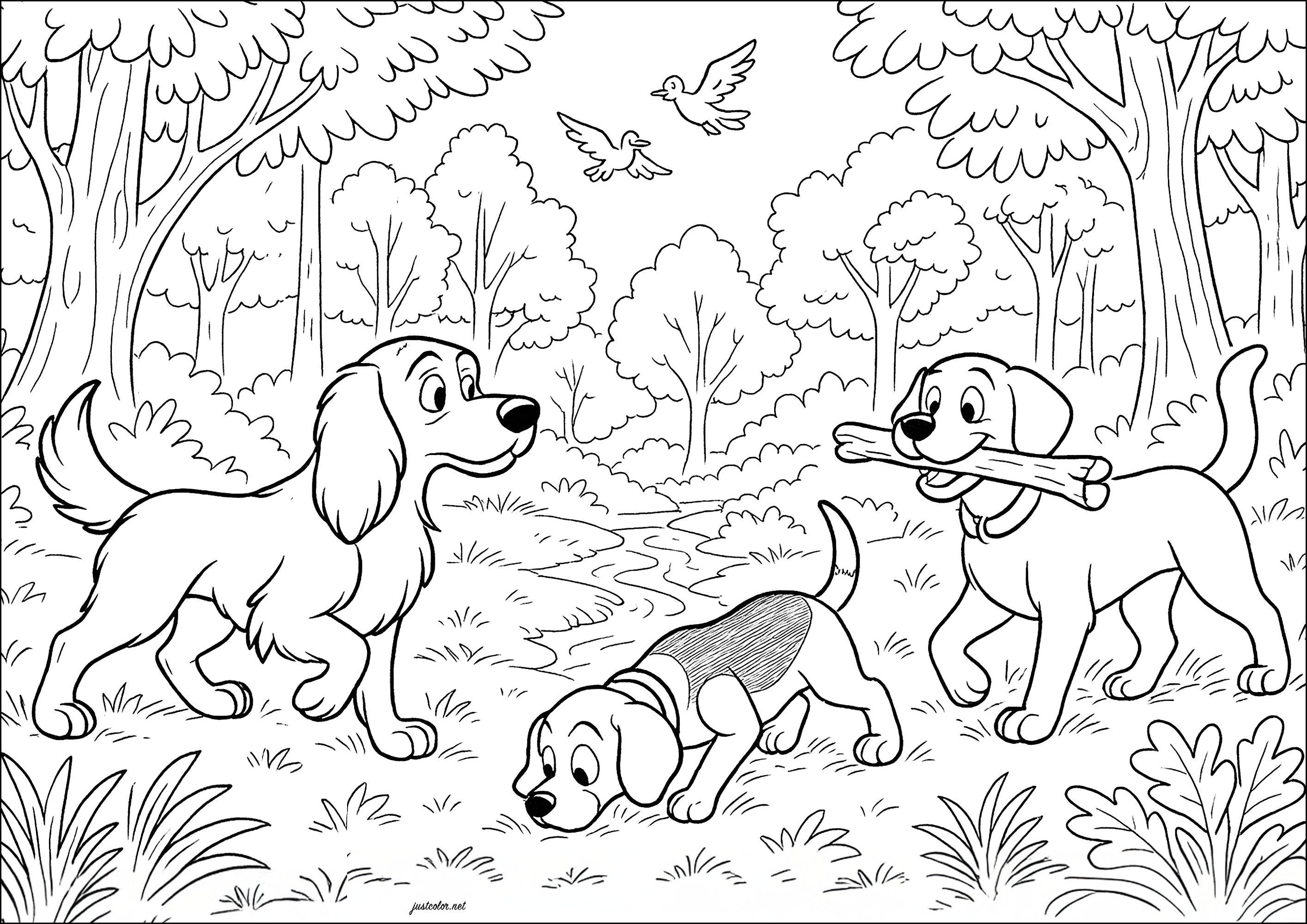 Dog walks in the forest (Coloring Page)