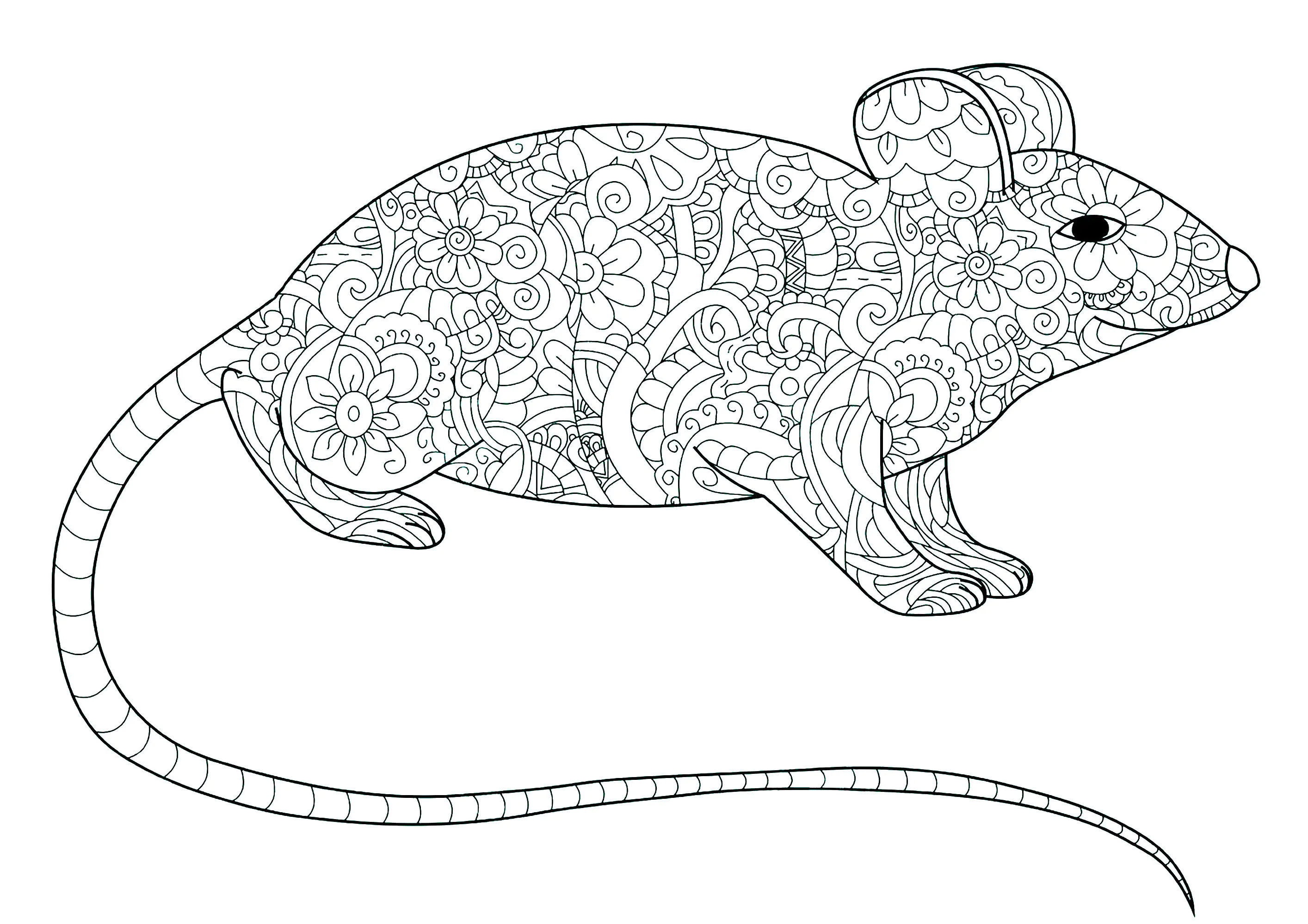 Discover complex coloring pages for adults on the theme of Mouse on Just Color