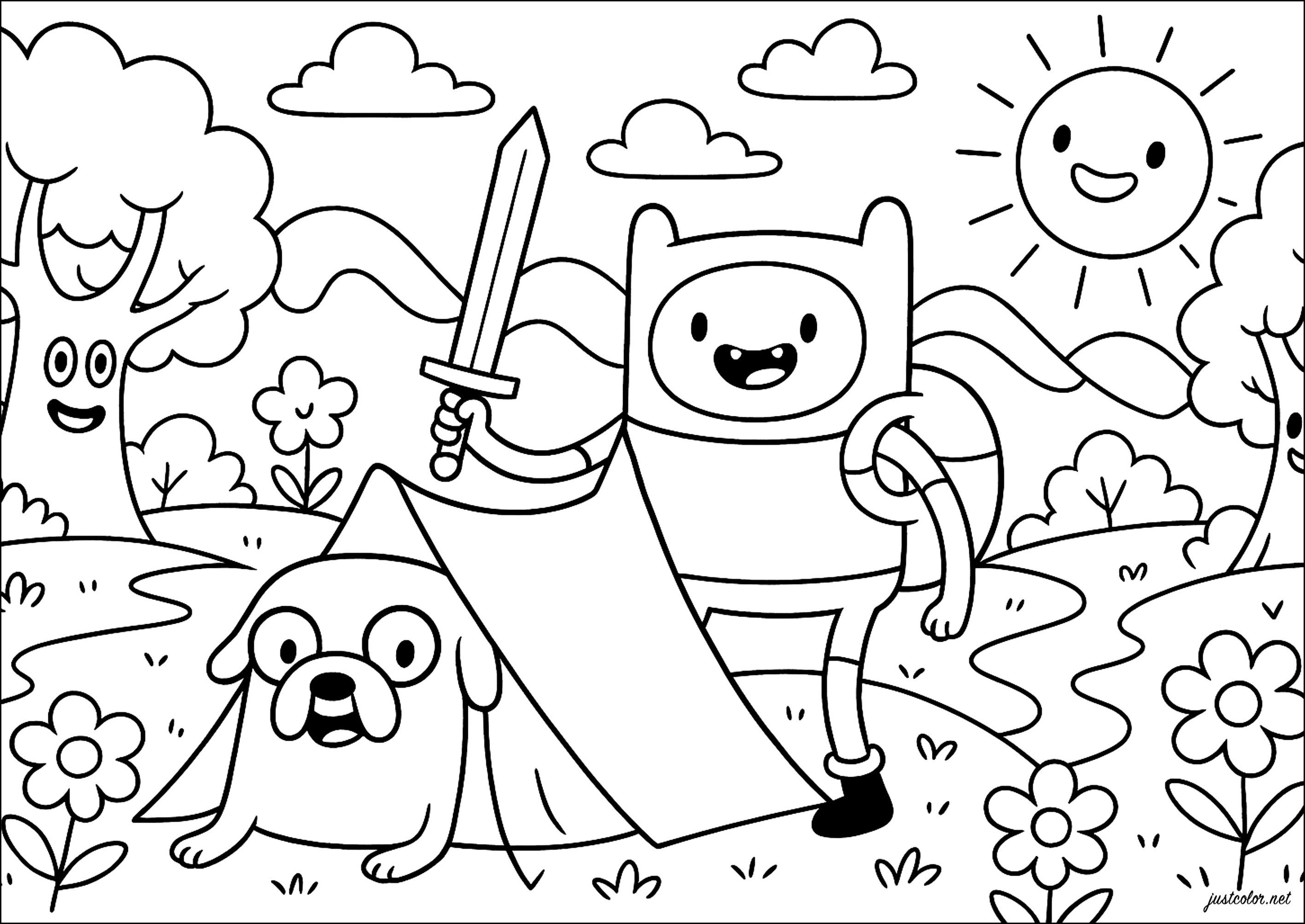 A joyful adventure in the heart of nature (Adventure Time Coloring Page)