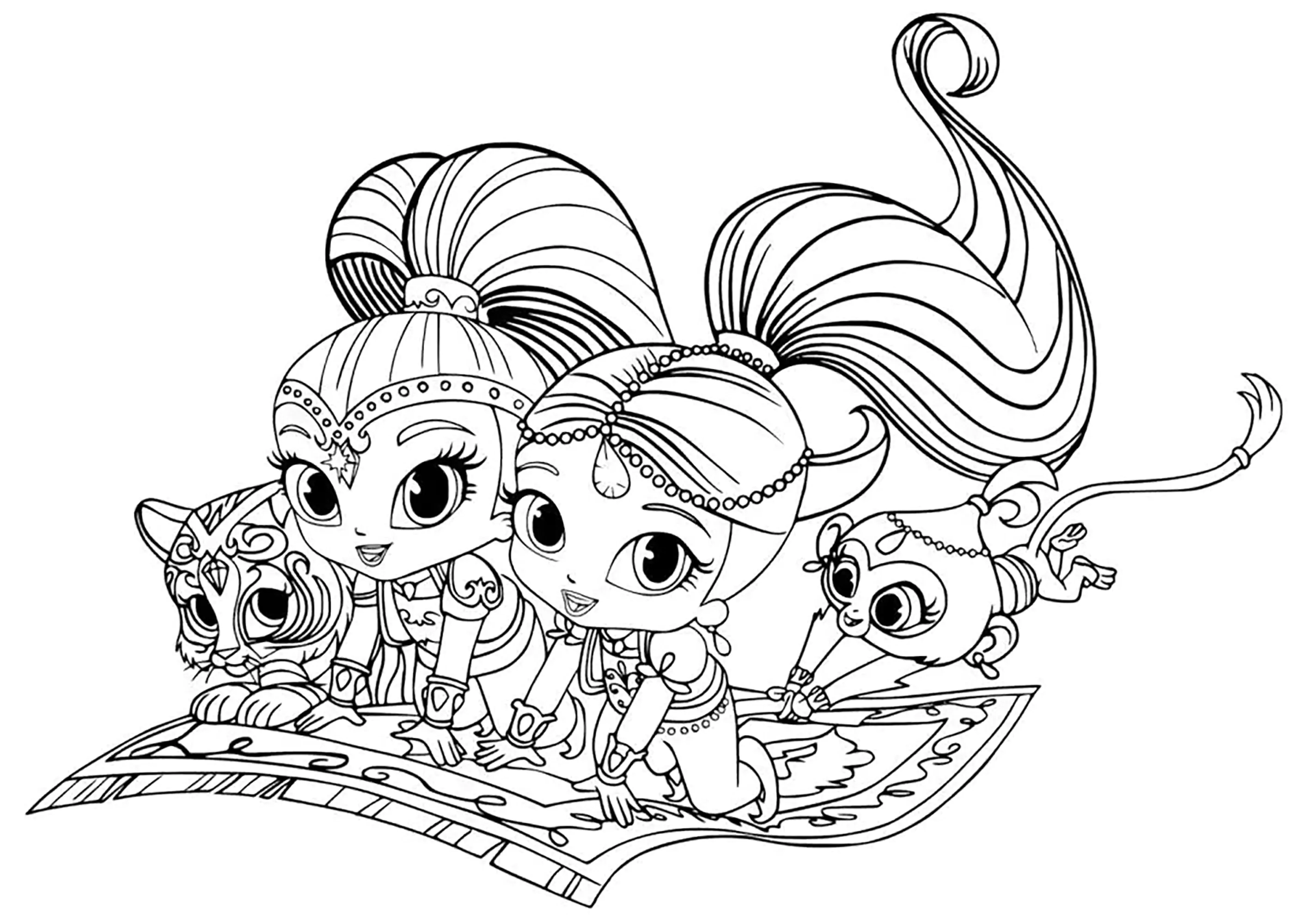 Shimmer and Shine on a magic carpet (Coloring Page)