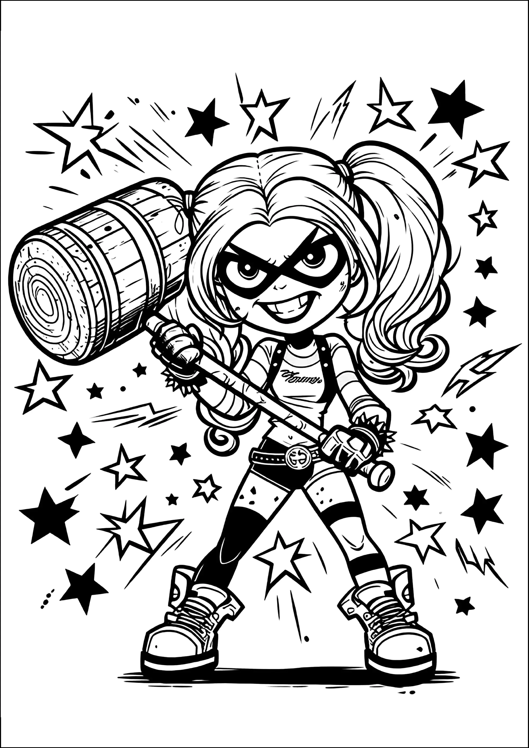 Harley Quinn and her big hammer (Coloring Page)