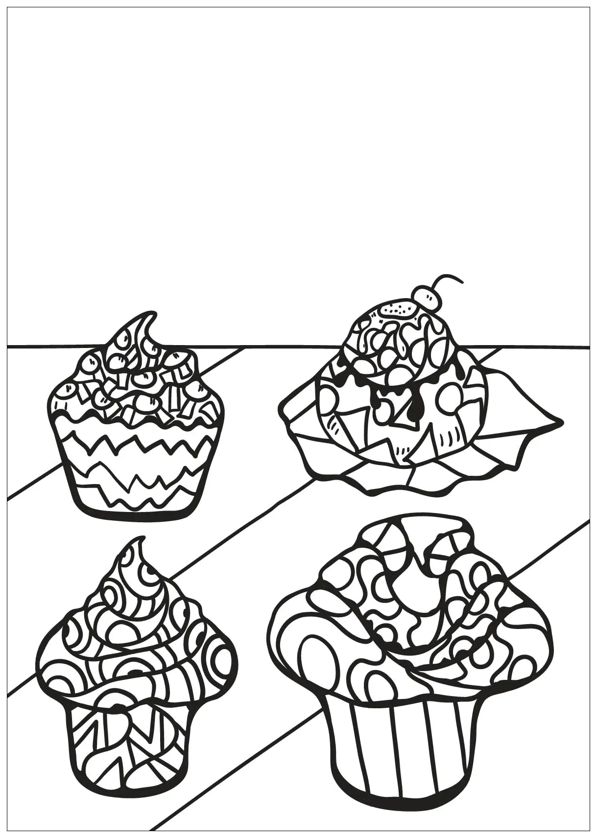 A cool and effortless Cupcake And Cake outline to color for kids, to print.