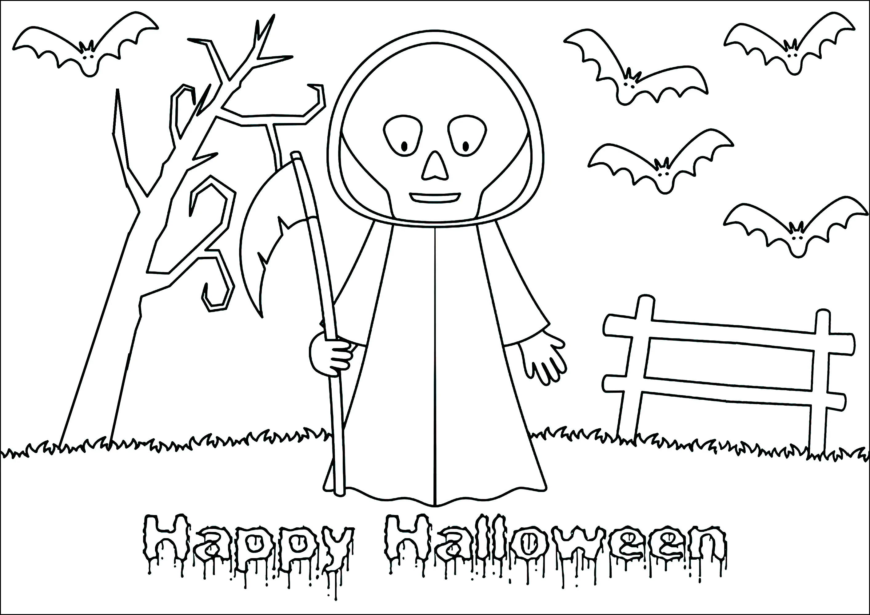 The grim reaper to color for children