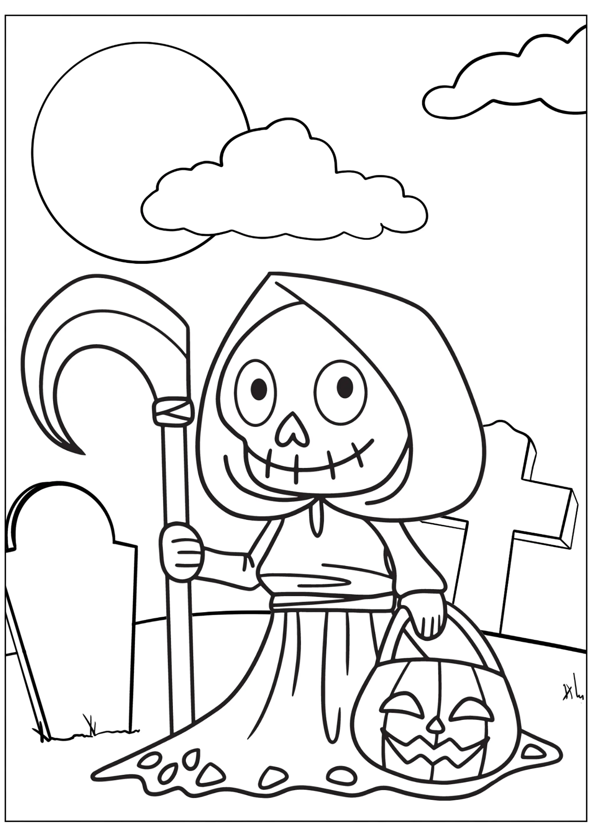 The grim reaper to color for kids