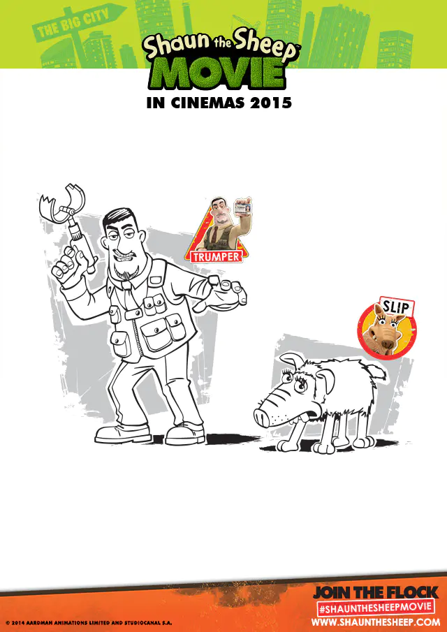 Shaun das Schaf: Trumper rutscht aus. (Ausmalbild)