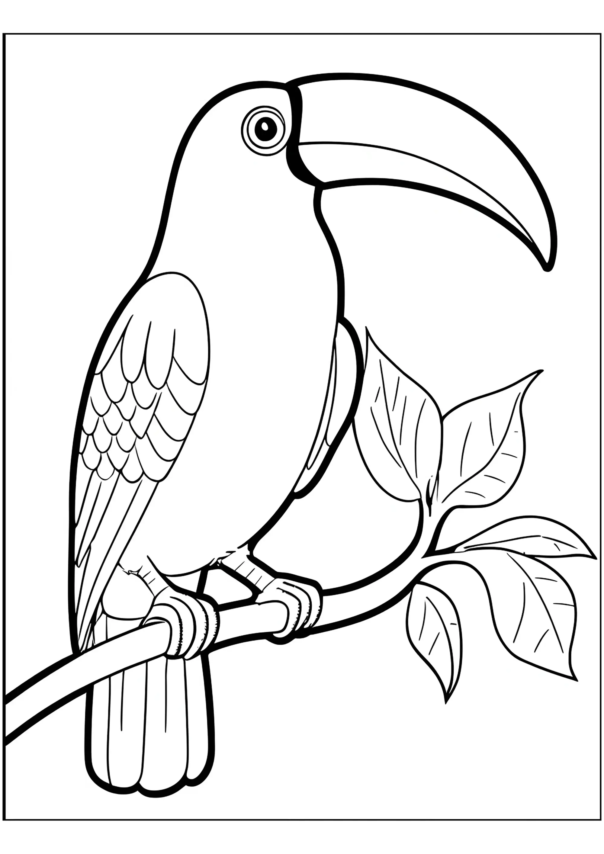 Tukan auf einem Ast (Ausmalbild von Vögel)