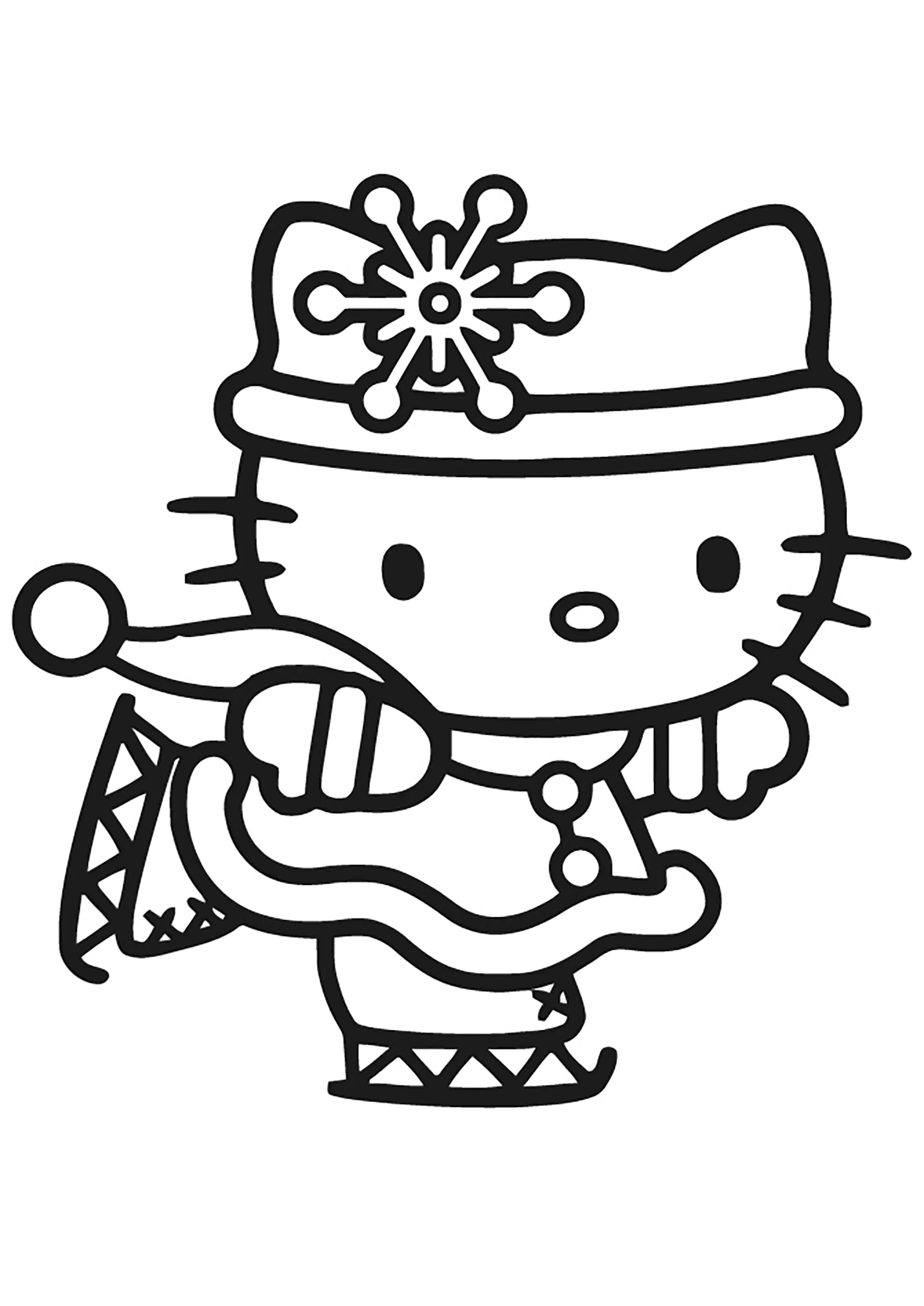 Hello Kitty läuft Schlittschuh. (Ausmalbild)
