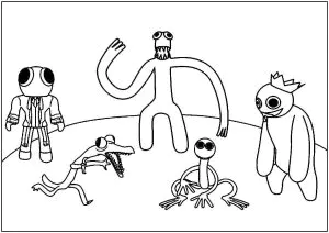 Rainbow Friends ist ein Videospiel der Plattform Roblox aus dem Jahr 2021. Kinder werden in eine Falle gelockt, als ein Manipulator auf dem Jahrmarkt den Pfeil eines Wegweisers umlenkt und sie in eine verlassene Fabrik führt, wo sie Aufgaben erfüllen müssen, um den tödlichen Bedrohungen der Rainbow Friends zu entkommen: Blue, Green, Orange und Purple. Hier sind Ausmalbilder, die von Rainbow Friends inspiriert sind .