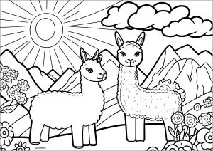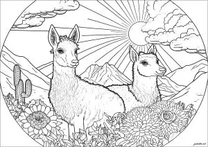 A trendy and somewhat complicated Llama outline to color for adults, to print or download.