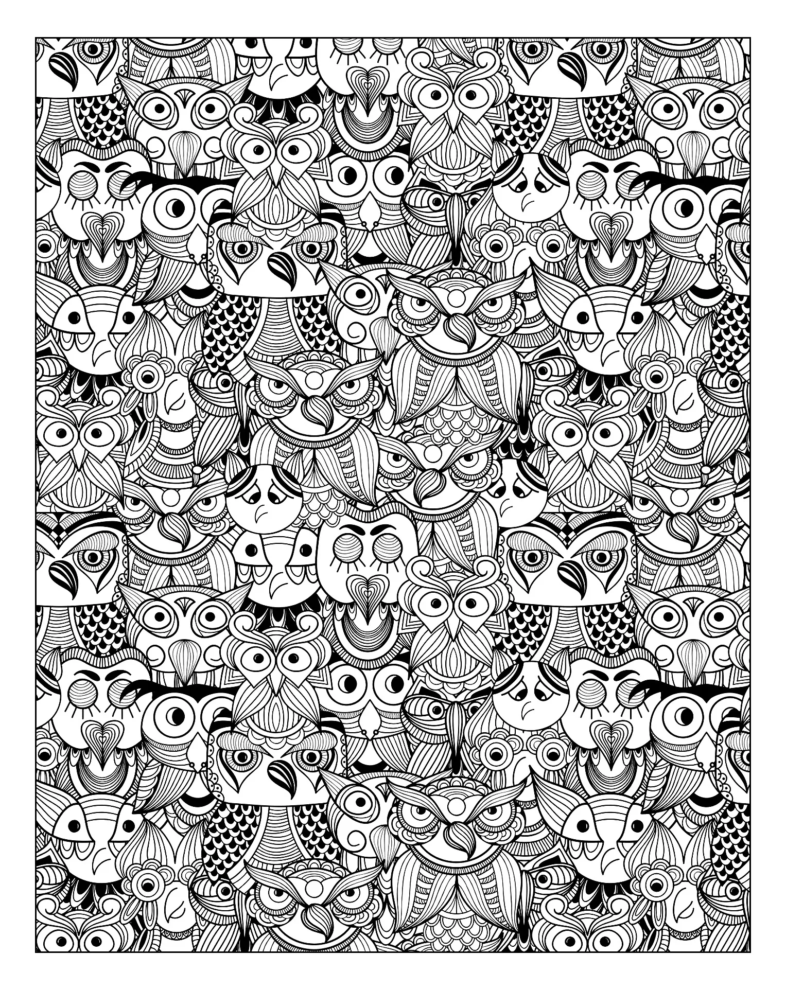 Many owls in this coloring page