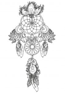 Dreamcatcher to print and color : big feathers