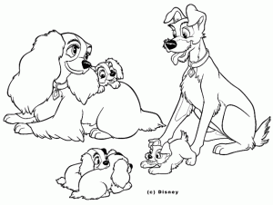 ¿Sabías que? En La Bella y el Vagabundo se cruzan varias razas de perros. En efecto, Jock es un terrier escocés, Lady es una perra cocker spaniel inglés, César un perro de caza Saint-Hubert... Te dejamos descubrir nuestras pocas imágenes de La Bella y el Vagabundo para imprimir y colorear, película de Disney estrenada en 1955.