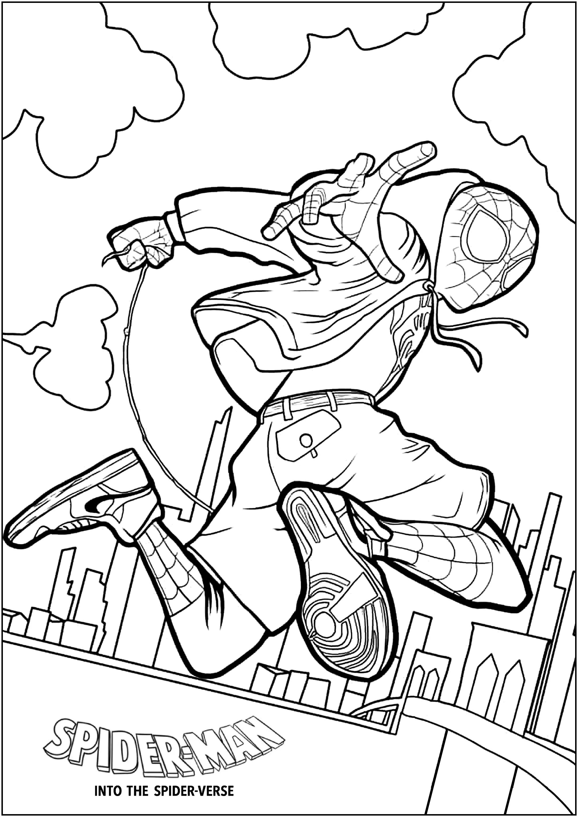 Spider-Man (Miles Morales) en Brooklyn (Página de Spider-Man: Into the Spider-Verse para imprimir)