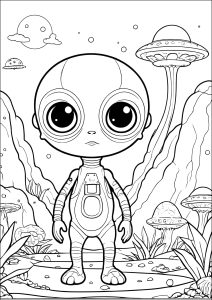 Alien en un platillo volante entre los planetas (Página de Extranjero para imprimir)