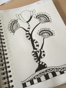 Here are the different steps of the drawing «Savage Flowers». If you reproduce it, don’t hesitate to add some flowers, modify some leaves … Use different Zentangle patterns … Feel free !
