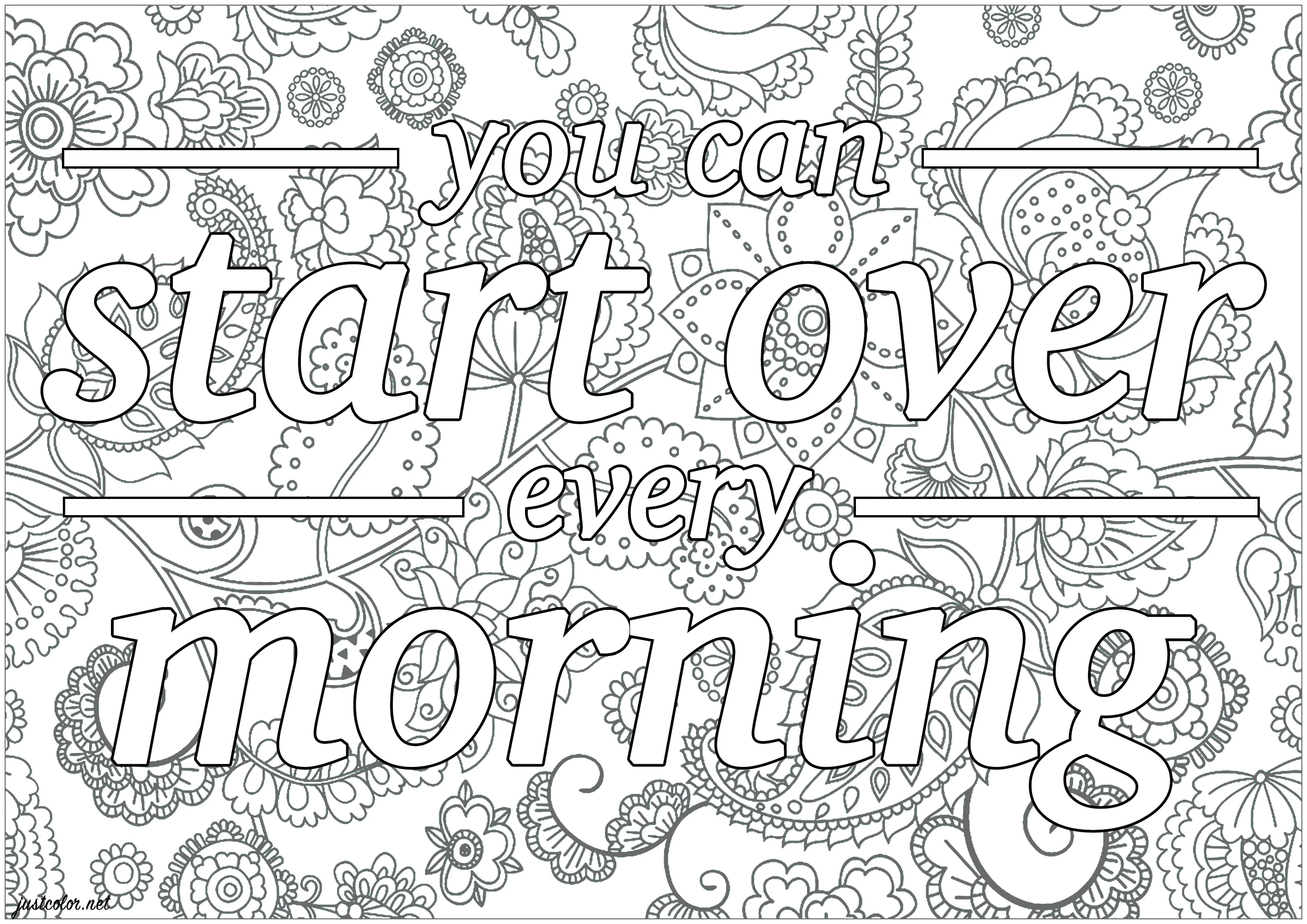 Pode começar de novo todas as manhãs (Página de Páginas para colorir para adultos: grátis para baixar em PDF e imprimir para colorir)