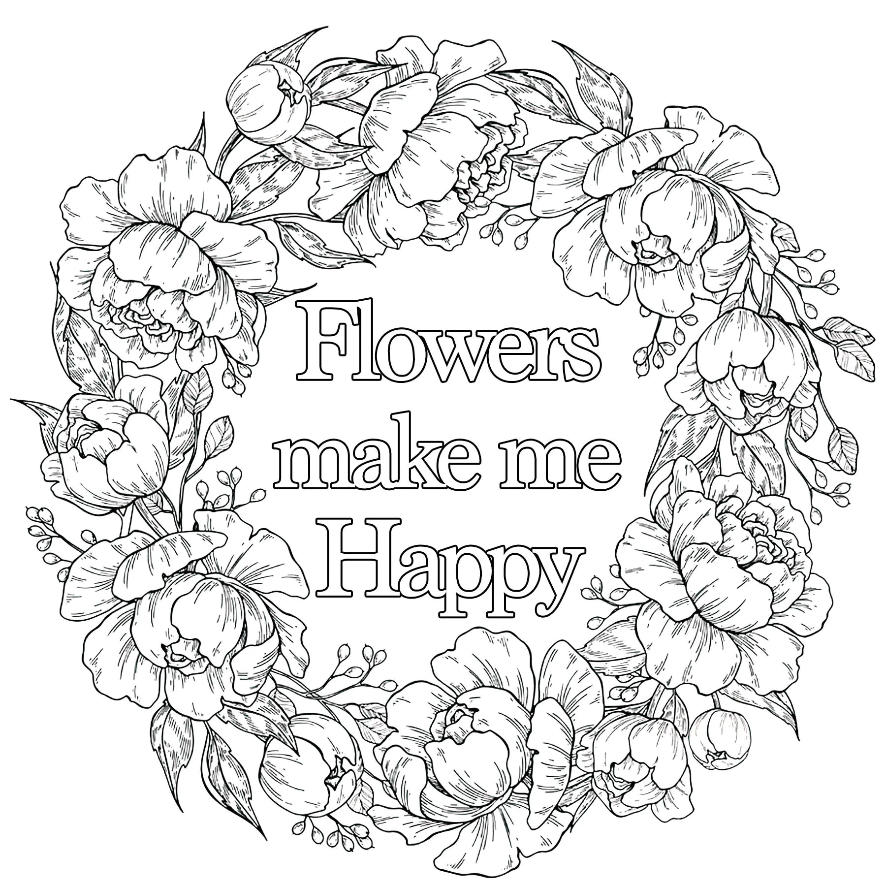 As flores fazem-me feliz (Página de Páginas para colorir para adultos: grátis para baixar em PDF e imprimir para colorir)