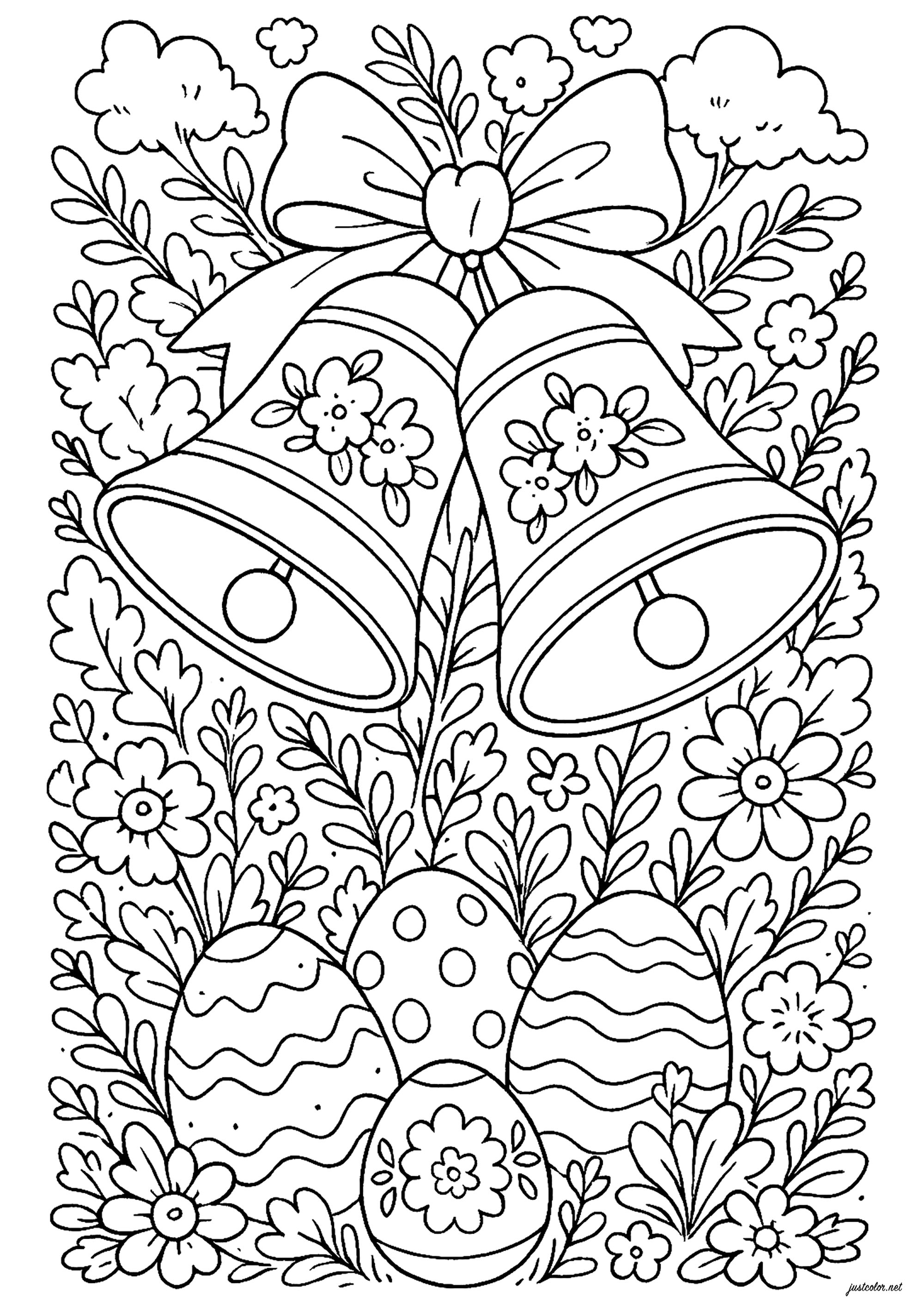 Sinos e ovos da Páscoa (Página para colorir)