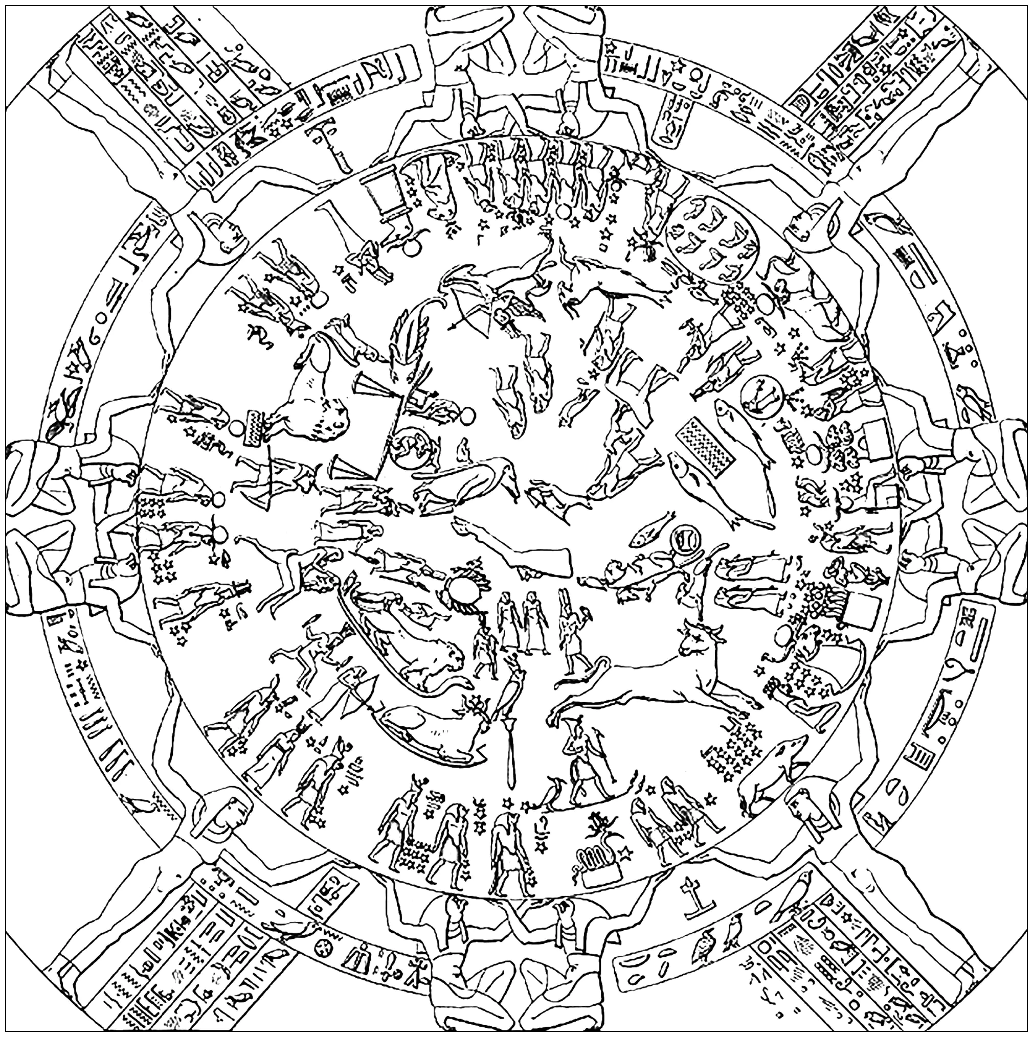 Dendera Zodíaco (Página de Egito e hieróglifos para colorir)