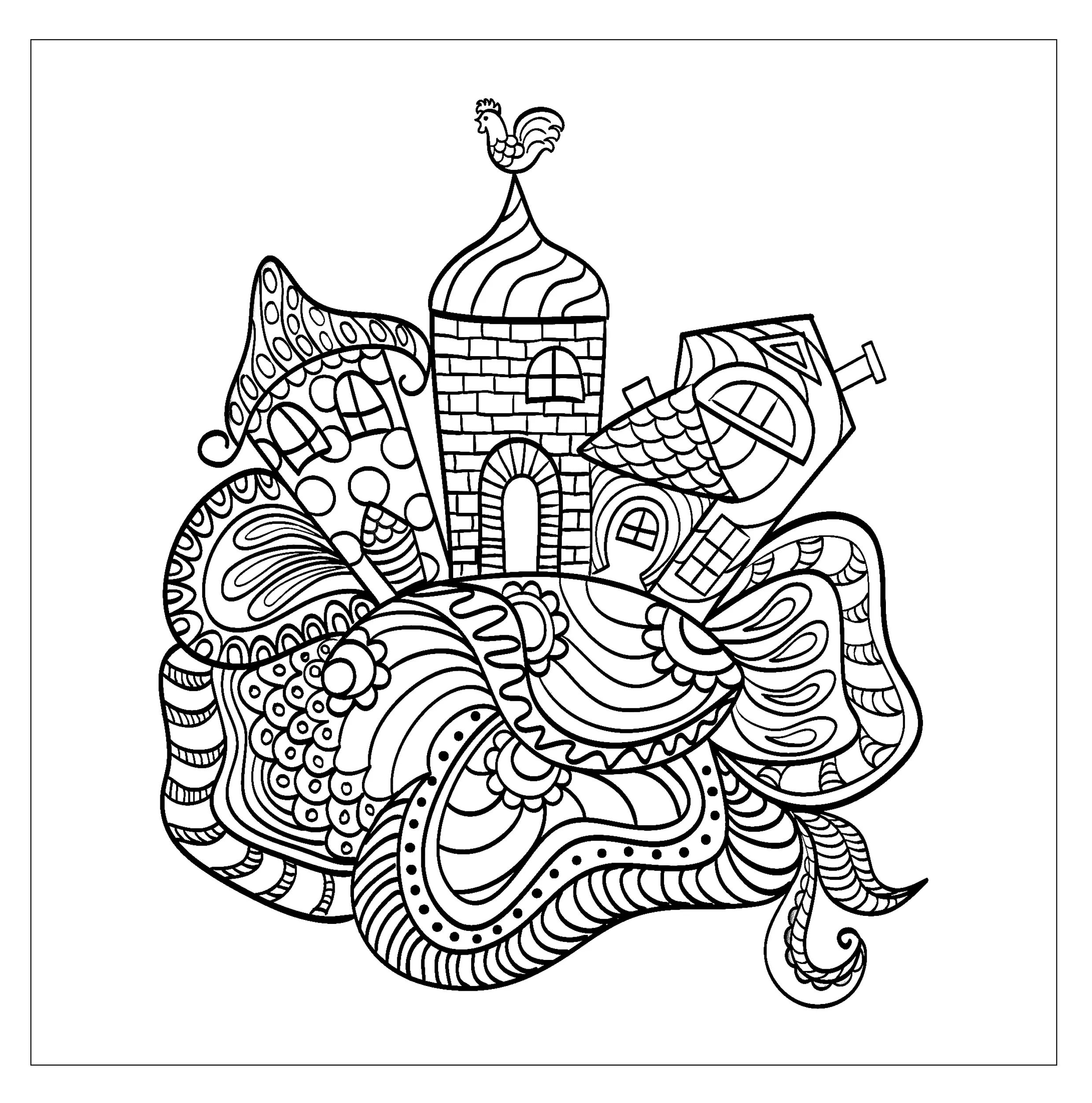 Funny houses that seems to come from a child dream ! (Countries, Cities and Monuments Coloring Page)