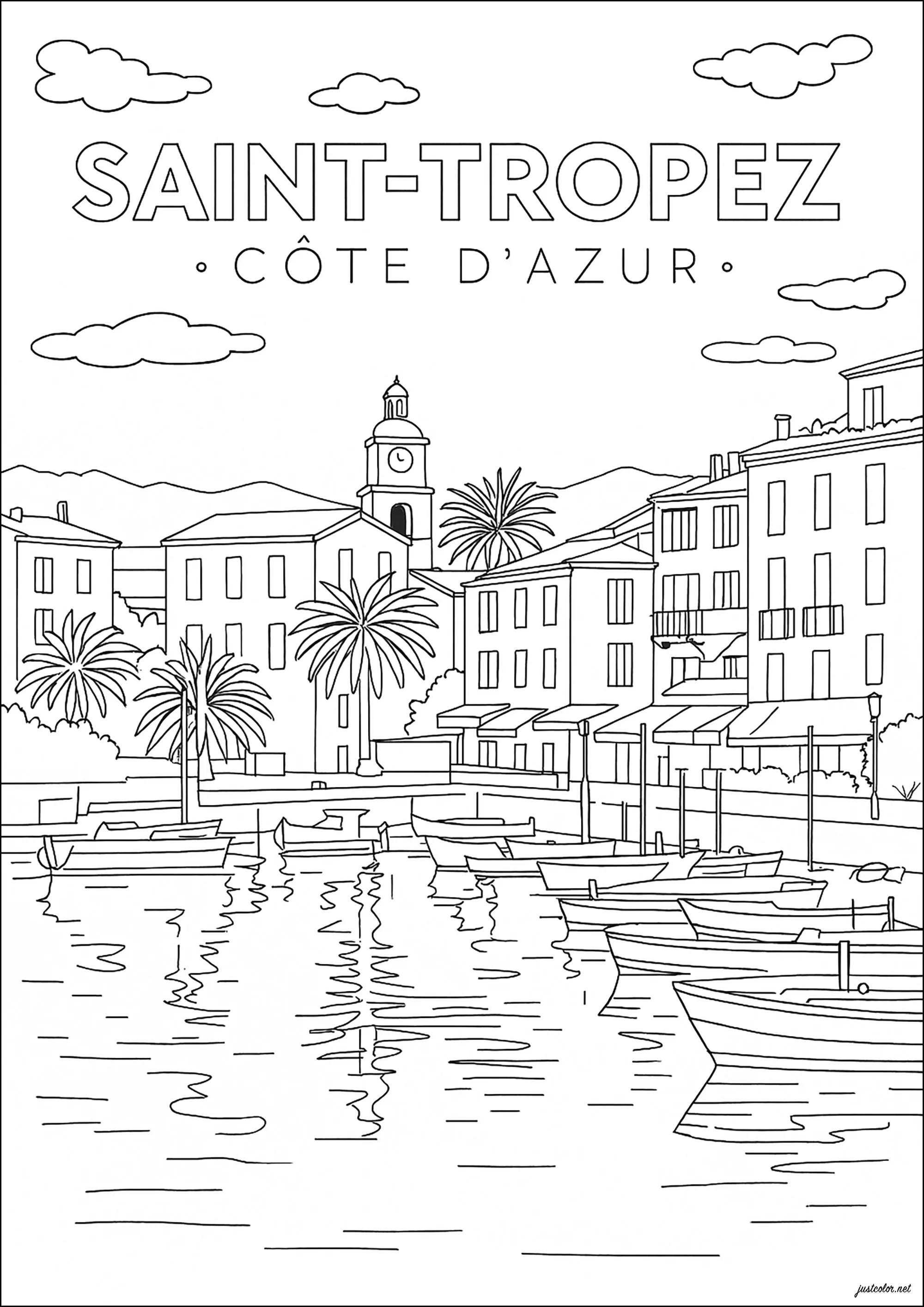 Saint-Tropez, Côte d'Azur (France) (Countries, cities and architecture Coloring Page)